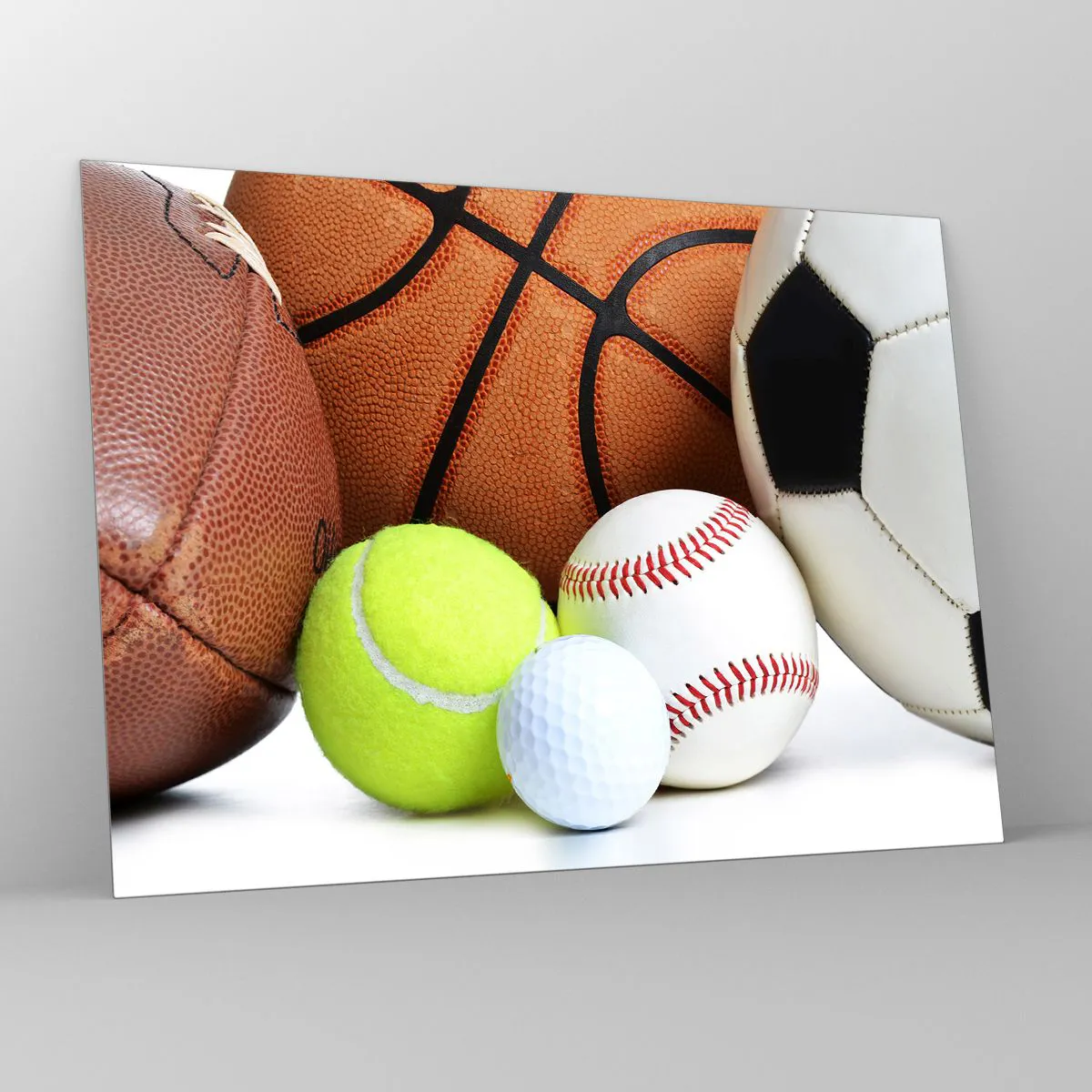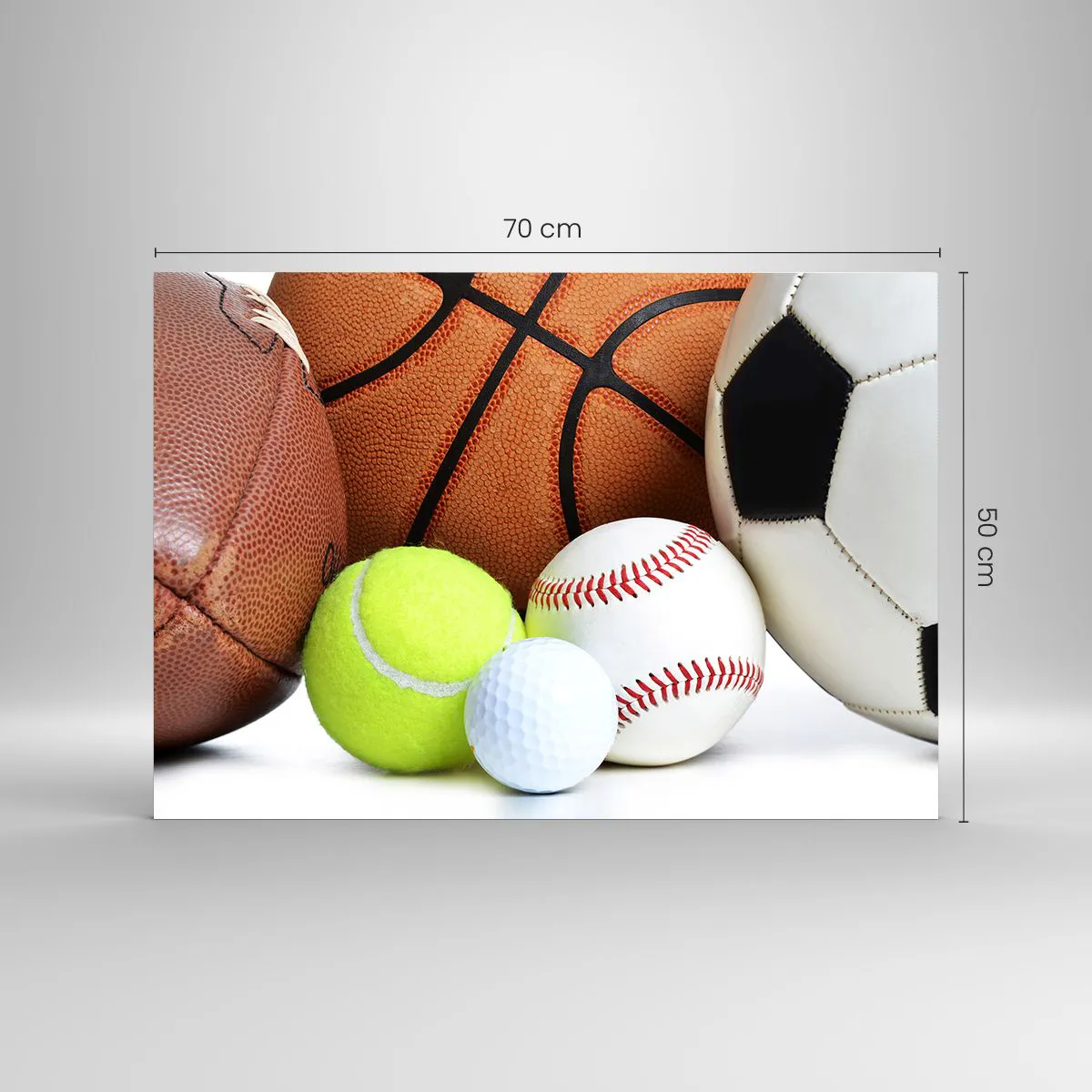 Impression sur verre - Image sur verre - Un ensemble de ballons de sport sur fond blanc - 70x50cm - Le football nous connecte ! - Décoration murale moderne pour le salon et la chambre ARTTOR