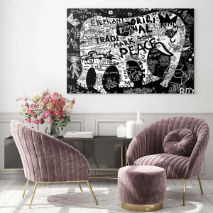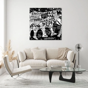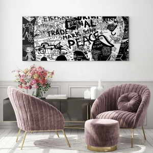 Impression sur verre - Image sur verre - Image de graffiti en noir et blanc avec des thèmes de paix et de liberté - 50x70cm - La richesse des rues - Décoration murale moderne pour le salon et la chambre ARTTOR