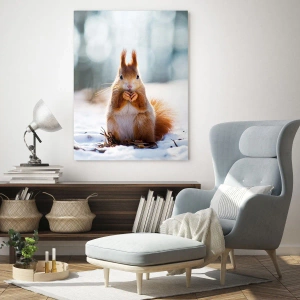 Impression sur verre - Image sur verre - Écureuil dans la neige avec une noix dans la forêt d'hiver - 120x80cm - Qu'est ce que tu regardes comme ça? - Décoration murale moderne pour le salon et la chambre ARTTOR