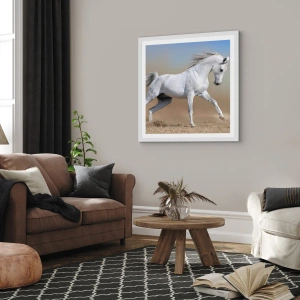 • Cheval, Animaux, Galop, Animaux, Pour le bureau, Pour le bureau, Pour la salle à manger, Pour le hall, Pour le salon, Pour la chambre, Blanc, Carré