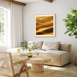 Affiche dans un chêne clair - Poster - Caravane sur les vagues du désert - 100x70 cm
