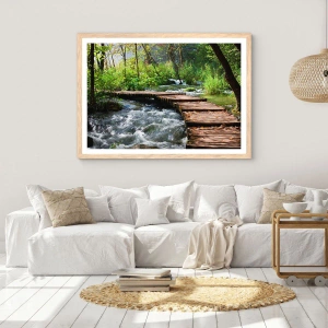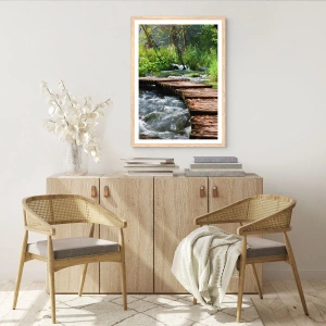 Affiche dans un chêne clair - Poster - Au-dessus de la cascade mousseuse - 91x61 cm