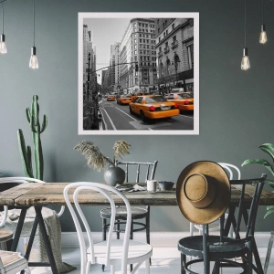 Affiche - Poster - Taxis jaunes dans les rues de la ville en noir et blanc - 50x70cm - Soleil des grandes villes - Décoration murale moderne pour le salon et la chambre ARTTOR