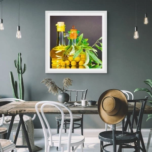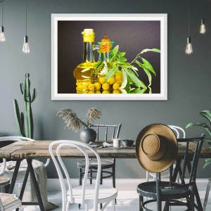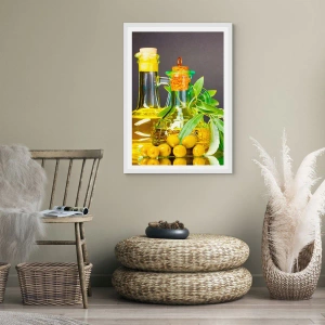 Affiche dans un cadre blanc - Poster - Nature morte aux olives et à l'huile d'olive - 30x40 cm