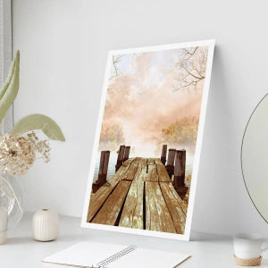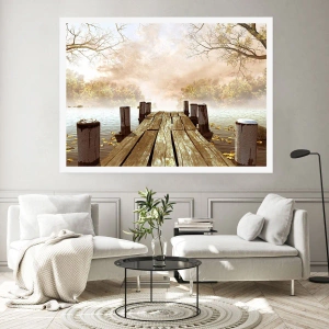 Affiche - Poster - Une jetée en bois menant à un lac calme dans la brume matinale - 100x70cm - La douce tristesse de l'automne - Décoration murale moderne pour le salon et la chambre ARTTOR
