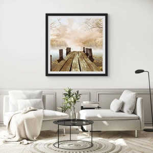 L'affiche « Douce Tristesse de l'Automne » présente une charmante vue d'une vieille jetée en bois s'étendant sur un lac calme, entourée d'une subtile brume. Le fond aux tons chauds et le paysage délicat et diffus confèrent à l'ensemble une atmosphère unique qui apaise les sens et apaise. Chaque détail de la structure en bois de la jetée a été rendu avec un soin extraordinaire, soulignant son charme rustique et son authenticité.