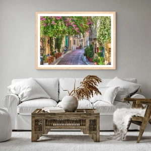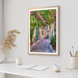 Affiche dans un chêne clair - Poster - Allée fleurie - 50x70 cm