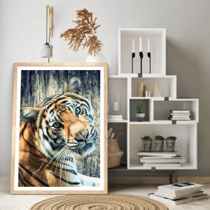 Affiche dans un chêne clair - Poster - Portrait dans les flots de lumière - 50x40 cm