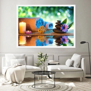 Affiche - Poster - Ensemble SPA relaxant avec serviettes, bougies et pierres - 100x70cm - Temps pour le corps - Décoration murale moderne pour le salon et la chambre ARTTOR