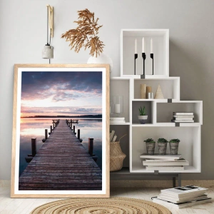 Affiche dans un chêne clair - Poster - Une frontière tranquille entre le jour et la nuit - 60x60 cm