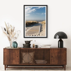Affiche dans un cadre noir - Poster - Derrière la dune, dans le bruissement de l'herbe - 50x50 cm
