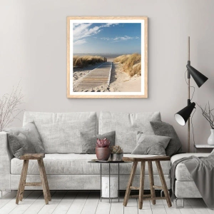 Affiche dans un chêne clair - Poster - Derrière la dune, dans le bruissement de l'herbe - 50x50 cm
