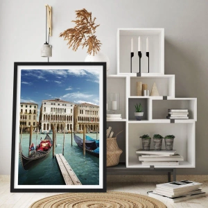 Affiche dans un cadre noir - Poster - Venise avec des gondoles et des palais contre le ciel - 100x70cm - Palace bleu ciel - Décoration murale moderne pour le salon et la chambre ARTTOR