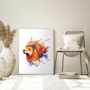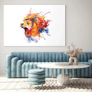 Impression sur verre - Image sur verre - Lion coloré dans un style aquarelle sur fond blanc - 50x70cm - exploser de colère - Décoration murale moderne pour le salon et la chambre ARTTOR