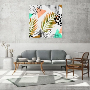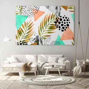 Impression sur verre - Image sur verre - Formes géométriques et feuilles aux couleurs pastel - 100x70cm - Décoration avec feuille de palmier - Décoration murale moderne pour le salon et la chambre ARTTOR