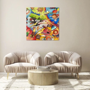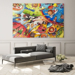 Impression sur verre - Image sur verre - Une illustration colorée d'une aventure spatiale pour les enfants - 120x80cm - Grande aventure spatiale - Décoration murale moderne pour le salon et la chambre ARTTOR