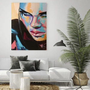 Impression sur verre - Image sur verre - Portrait d'une femme aux couleurs vives sur un fond abstrait - 50x70cm - Le coeur sauvageon - Décoration murale moderne pour le salon et la chambre ARTTOR
