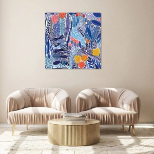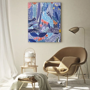 Impression sur verre - Image sur verre - Un motif végétal coloré dans un style graphique moderne - 70x100cm - Jardin hawaïen - Décoration murale moderne pour le salon et la chambre ARTTOR