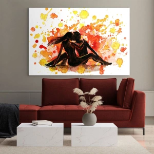 La peinture sur verre est faite sur un verre de 4 mm d'épaisseur. Les bords du verre ont une arête trapézoïdale mate. La tableau est sûr à l'utilisation et prêt à être accroché - il a des crochets en métal attachés à l'arrière du cadre et des entretoises en mousse permettant la régulation uniforme de la distance du tableau au mur.