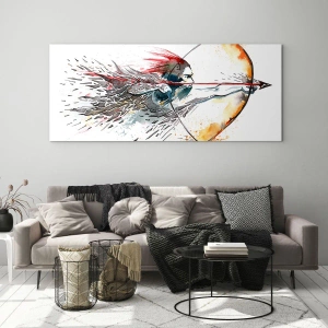 Impression sur verre - Image sur verre - Guerrier mythique avec un arc de feu - 90x30 cm