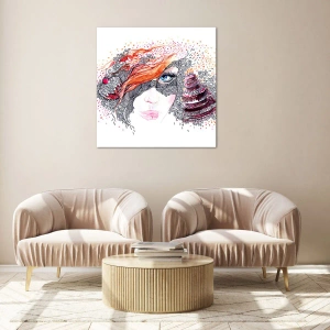 Impression sur verre - Image sur verre - Portrait d'une femme aux motifs dynamiques et aux accents rouges - 50x70cm - Avec elle, c'est tous les jours la fête - Décoration murale moderne pour le salon et la chambre ARTTOR