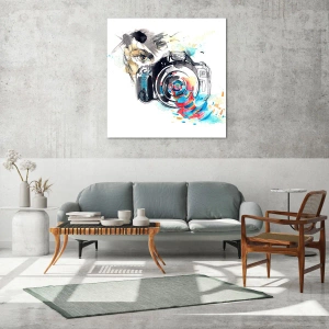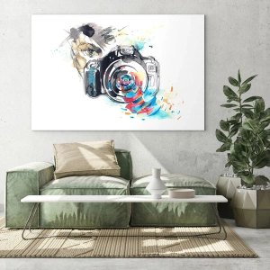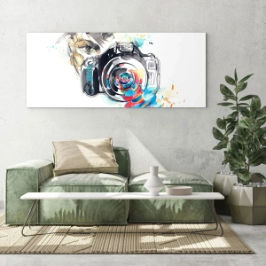 Impression sur verre - Image sur verre - Appareil photo aquarelle avec des détails colorés - 80x120cm - Dans l'oeil de l'objectif - Décoration murale moderne pour le salon et la chambre ARTTOR