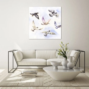 Impression sur verre - Image sur verre - Oiseaux en vol contre un ciel clair - 70x50cm - Liberté en gris et bleu - Décoration murale moderne pour le salon et la chambre ARTTOR