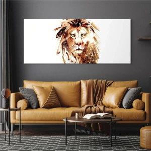 Impression sur verre - Image sur verre - Portrait à l'aquarelle d'un lion aux détails intenses - 120x50cm - Force et dignité - Décoration murale moderne pour le salon et la chambre ARTTOR