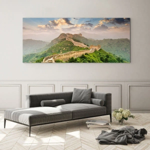 Impression sur verre - Image sur verre - La Grande Muraille de Chine dans un paysage montagneux - 50x70cm - Grandeur éternelle - Décoration murale moderne pour le salon et la chambre ARTTOR