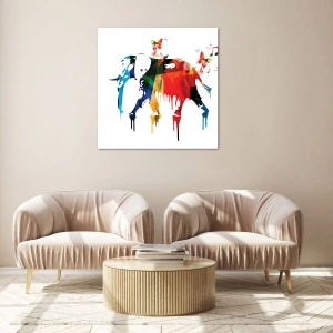 Ce tableau est idéal pour les intérieurs qui apprécient les décorations modernes et dynamiques. Il s'intègre parfaitement dans les bureaux, les espaces créatifs et les salons. Un éléphant coloré, qui se transforme en nuances arc-en-ciel, est un excellent accent pour les intérieurs en quête d'énergie et d'expression.