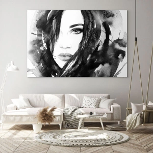 Impression sur verre - Image sur verre - Portrait de femme à l'aquarelle noir et blanc - 70x100cm - Portrait d'une dame en noir et blanc - Décoration murale moderne pour le salon et la chambre ARTTOR
