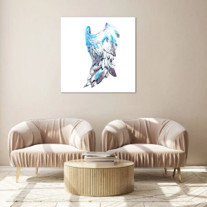 Impression sur verre - Image sur verre - Ailes d'ange dans les tons de bleu et de gris - 100x70cm - j'ai besoin d'ailes - Décoration murale moderne pour le salon et la chambre ARTTOR