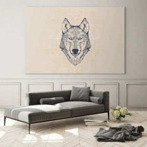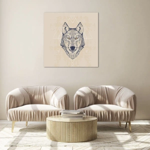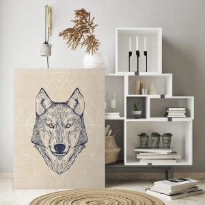 Impression sur verre - Image sur verre - Tête de loup sur fond de motifs géométriques - 50x70cm - Un alpha au regard pénétrant - Décoration murale moderne pour le salon et la chambre ARTTOR