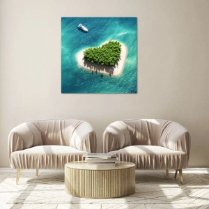 • Paysage, île dans l'océan, yacht, Paysages, Maritime, Nature, Voyage, Pour le bureau, Pour le bureau, Pour la salle à manger, Pour la salle de bain, Pour le hall, Pour le salon, Pour la chambre, Bleu vert, Carré