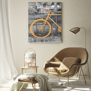Impression sur verre - Image sur verre - Illustration d'un vélo peint en orange sur un fond noir et blanc. - 50x70cm - Allez, je vais attendre ici - Décoration murale moderne pour le salon et la chambre ARTTOR