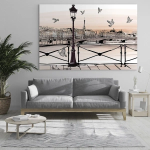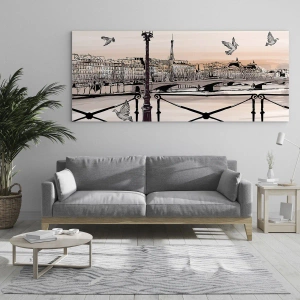 Impression sur verre - Image sur verre - Illustration d'une rue parisienne avec vue sur la Tour Eiffel à l'aube - 50x70cm - Sur les toits de Paris - Décoration murale moderne pour le salon et la chambre ARTTOR