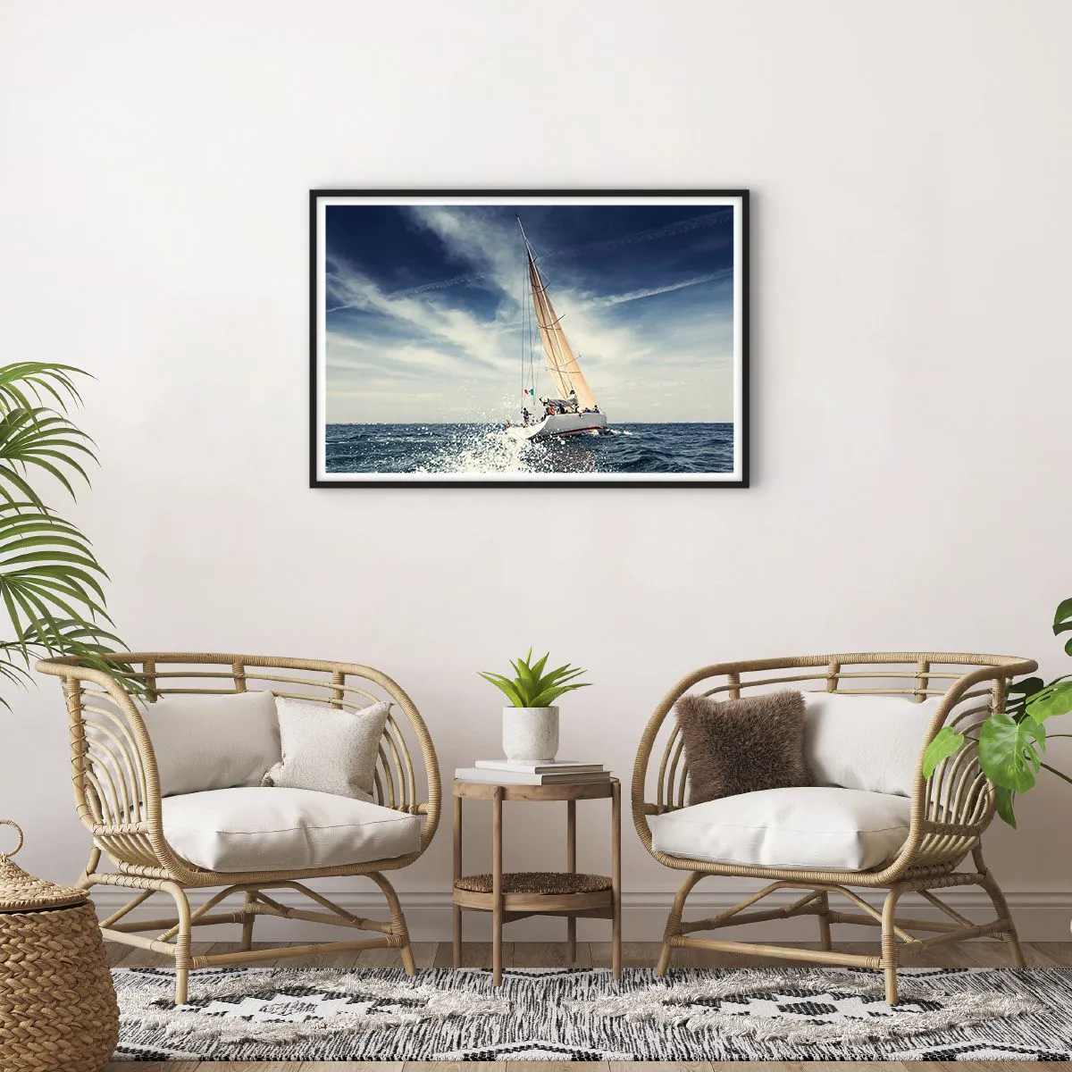 • Voilier, Océan, Yacht à voile, Paysages, Nautisme, Nature, Sports et Loisirs, Pour le bureau, Pour le bureau, Pour la salle à manger, Pour la salle de bain, Pour le hall, Pour le salon, Pour la chambre, Bleu, Horizontal