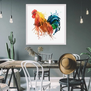 Affiche - Poster - Coq coloré dans un style aquarelle - 50x70cm - Robe royale, fierté royale - Décoration murale moderne pour le salon et la chambre ARTTOR