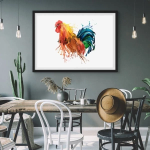 - Cette affiche aquarelle représente un coq coloré, aux couleurs vibrantes et au caractère dynamique. Idéale pour les intérieurs inspirés par la nature et l'art, elle est livrée avec un cadre noir de 50 x 70 cm.