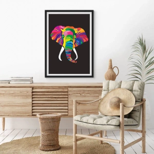 Affiche dans un cadre noir - Poster - L'éléphant qui aimait se baigner dans un arc-en-ciel - 60x60 cm