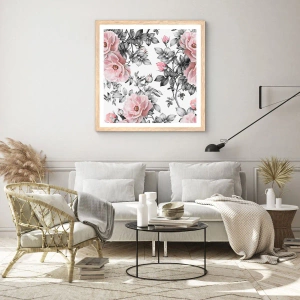Affiche dans un chêne clair - Poster - Se perdre dans les fleurs des roses - 40x50 cm