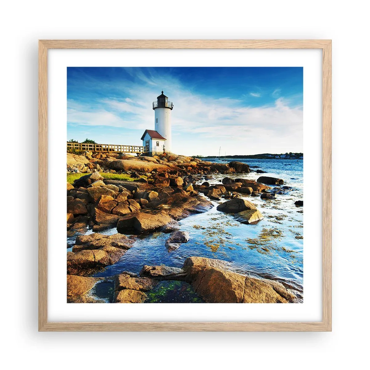 Affiche dans un chêne clair - Poster - Revenez heureux, j'attends - 50x50 cm