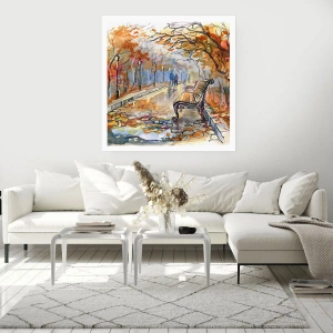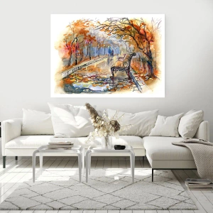 Affiche - Poster - Banc dans un parc en automne, aquarelle - 50x70cm - Errer ensemble à l'automne - Décoration murale moderne pour le salon et la chambre ARTTOR
