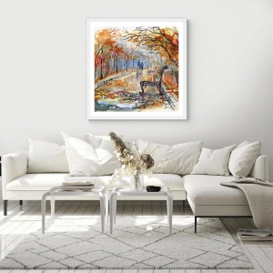 Affiche dans un cadre blanc - Poster - Errer ensemble à l'automne - 60x60 cm
