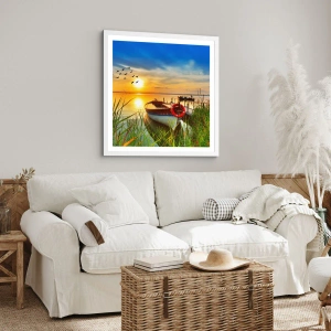 Affiche dans un cadre blanc - Poster - Les cormorans s'envolent déjà - 50x50 cm