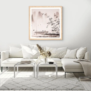 Affiche dans un chêne clair - Poster - Le silence des rizières - 40x40 cm