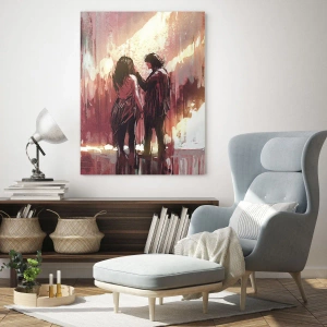 Impression sur verre - Image sur verre - Un couple dans la lumière chaleureuse d'un décor abstrait - 120x80cm - L'éternel spectacle de l'amour - Décoration murale moderne pour le salon et la chambre ARTTOR