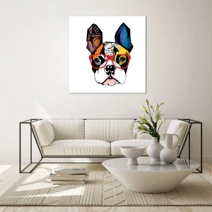 Impression sur verre - Image sur verre - Bouledogue dans une illustration colorée avec des lunettes rouges - 80x120cm - Intellectuel - Décoration murale moderne pour le salon et la chambre ARTTOR