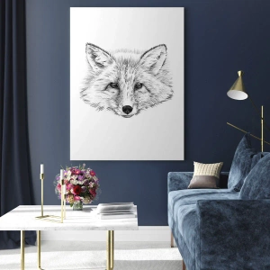 Impression sur verre - Image sur verre - Dessin d'une tête de renard sur fond blanc - 50x70cm - Ces yeux peuvent-ils mentir ? - Décoration murale moderne pour le salon et la chambre ARTTOR