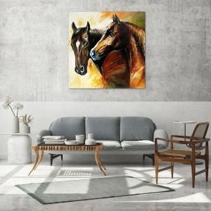 Impression sur verre - Image sur verre - Deux chevaux dans une composition artistique et dynamique - 50x70cm - Deux fois plus gracieux - Décoration murale moderne pour le salon et la chambre ARTTOR